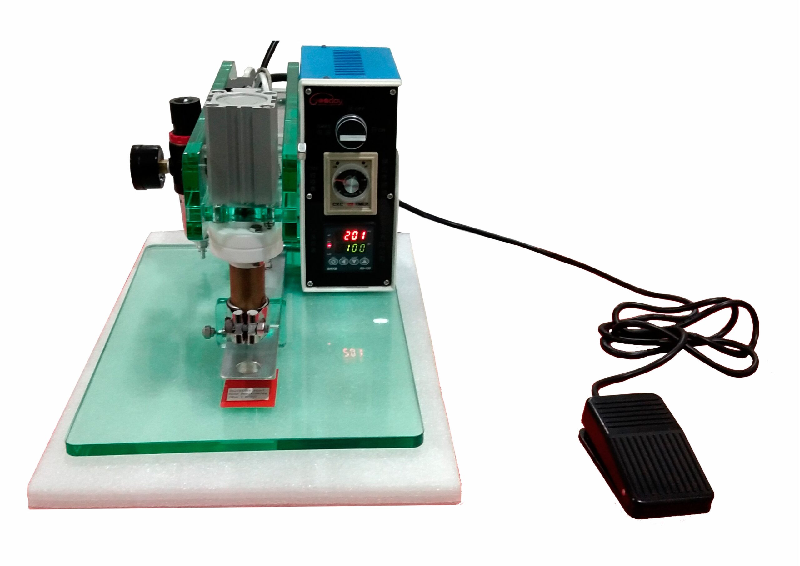 Solusi praktis dan ekonomis buat pasang one-way valve ke kemasan kopi atau produk sejenis. Rancangan mesin ini simpel, kompak, dan siapa saja bisa mengoperasikan tanpa ribet.